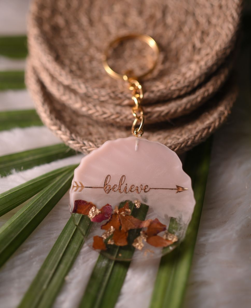 Carry a touch of nature wherever you go with our Bloom Whirl Resin Keychains. Each piece is a mini garden—crafted with real dried flowers, ferns, and vibrant hues preserved in crystal-clear resin. Their uneven round shape adds an organic charm, making every keychain one-of-a-kind. A perfect blend of beauty and function, ideal for everyday keys or as a statement bag accessory.
