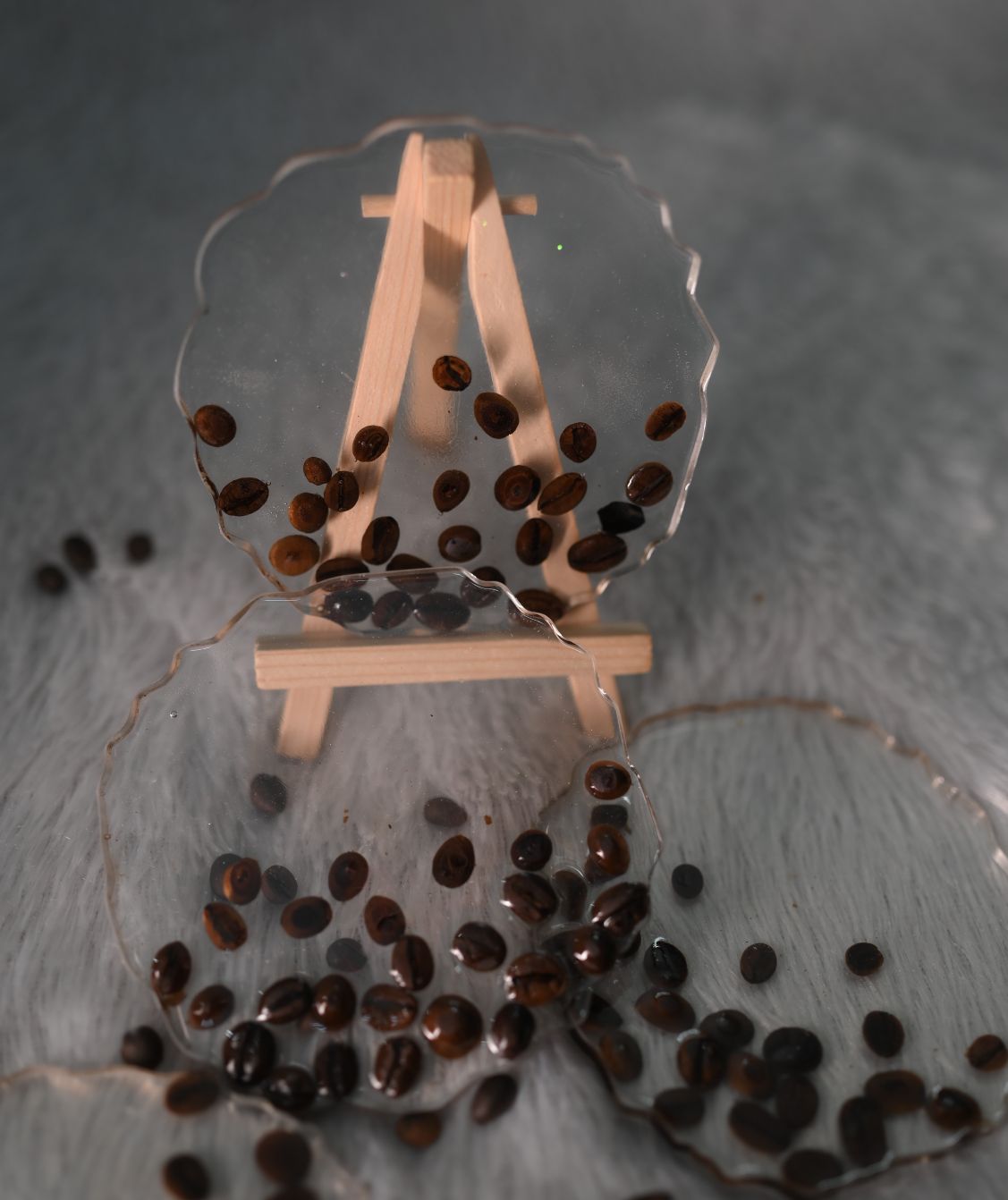 Indulge in the aroma of artistry with our Brewed Essence Resin Coaster Set, handcrafted with real coffee beans encased in crystal-clear, high-quality resin. Each coaster captures the warmth and charm of freshly brewed coffee, bringing an earthy, elegant touch to your table setting. The transparent base highlights the natural texture of the beans, making every piece beautifully unique.