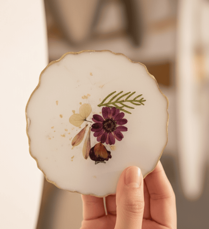 Bring a touch of nature to your table with this beautifully handmade coaster set. Each coaster is one-of-a-kind, showcasing delicate flowers and foliage preserved in resin. Ideal for adding a rustic, botanical charm to your home or as a thoughtful gift for nature lovers.
