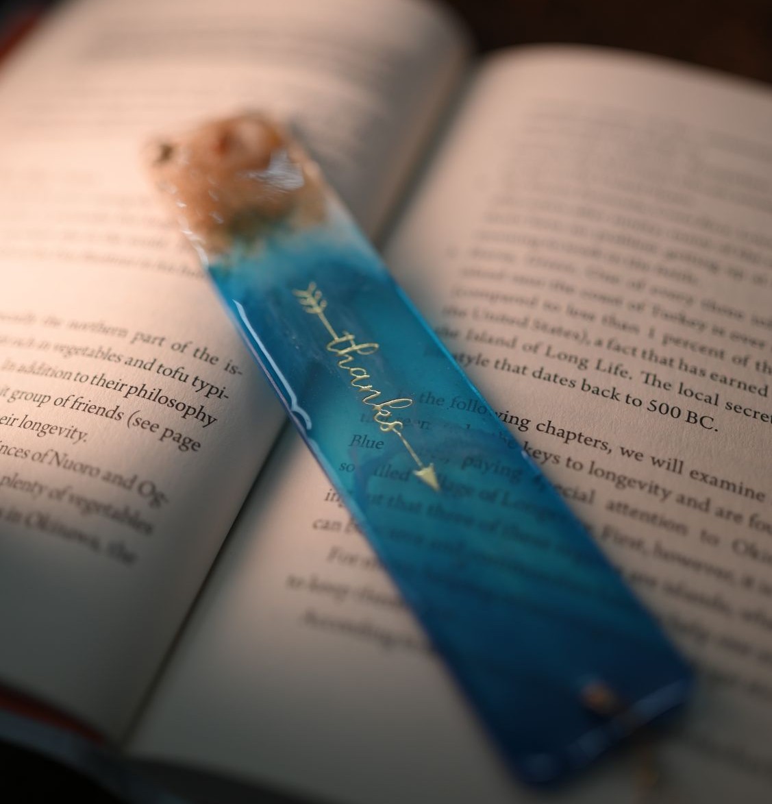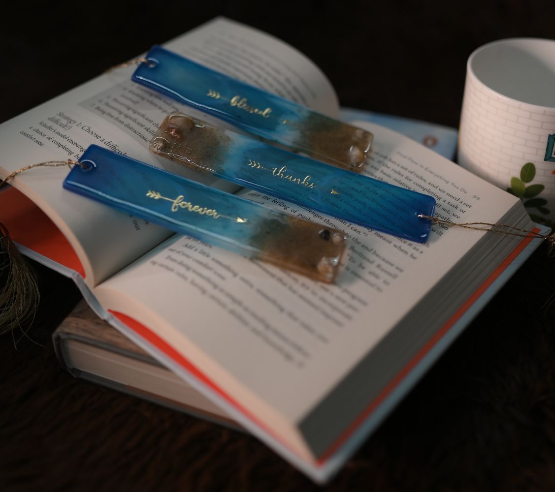 Available in different sizes, every bookmark is inscribed with a meaningful word — Blessed, Family, Love, Friends, Thanks — making them not only practical companions but also thoughtful keepsakes and gifts. Just like the waves of the sea, no two bookmarks are ever the same, making each one truly unique and one-of-a-kind.