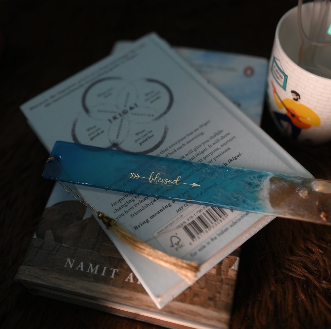 Carry the calm of the ocean and the strength of sacred shores into your everyday reading with the Oceanora bookmark. Each handcrafted resin bookmark is layered with flowing ocean waves, sands from Rameshwaram, and handpicked shells from the Kanyakumari Sangam.